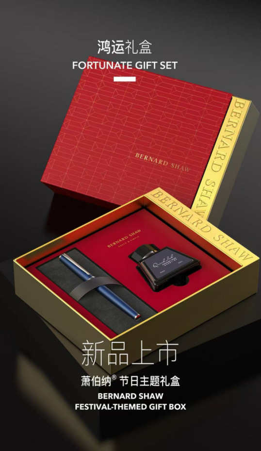 萧伯纳钢笔以中式美学为启发,以中国红做切入,开启钢笔与传统文化的完美碰撞,也在现代历久弥新中散发出更多年轻生机和创新活力。萧伯纳钢笔希望以礼盒链接国人情绪,赞颂吉祥美好并传递美好祝愿。