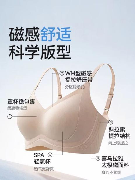 它不仅仅是一件内衣,更是基于新一代五维舒适体系的创新之作。从面料选择到设计细节,每一处都体现了对女性需求的精准把握。