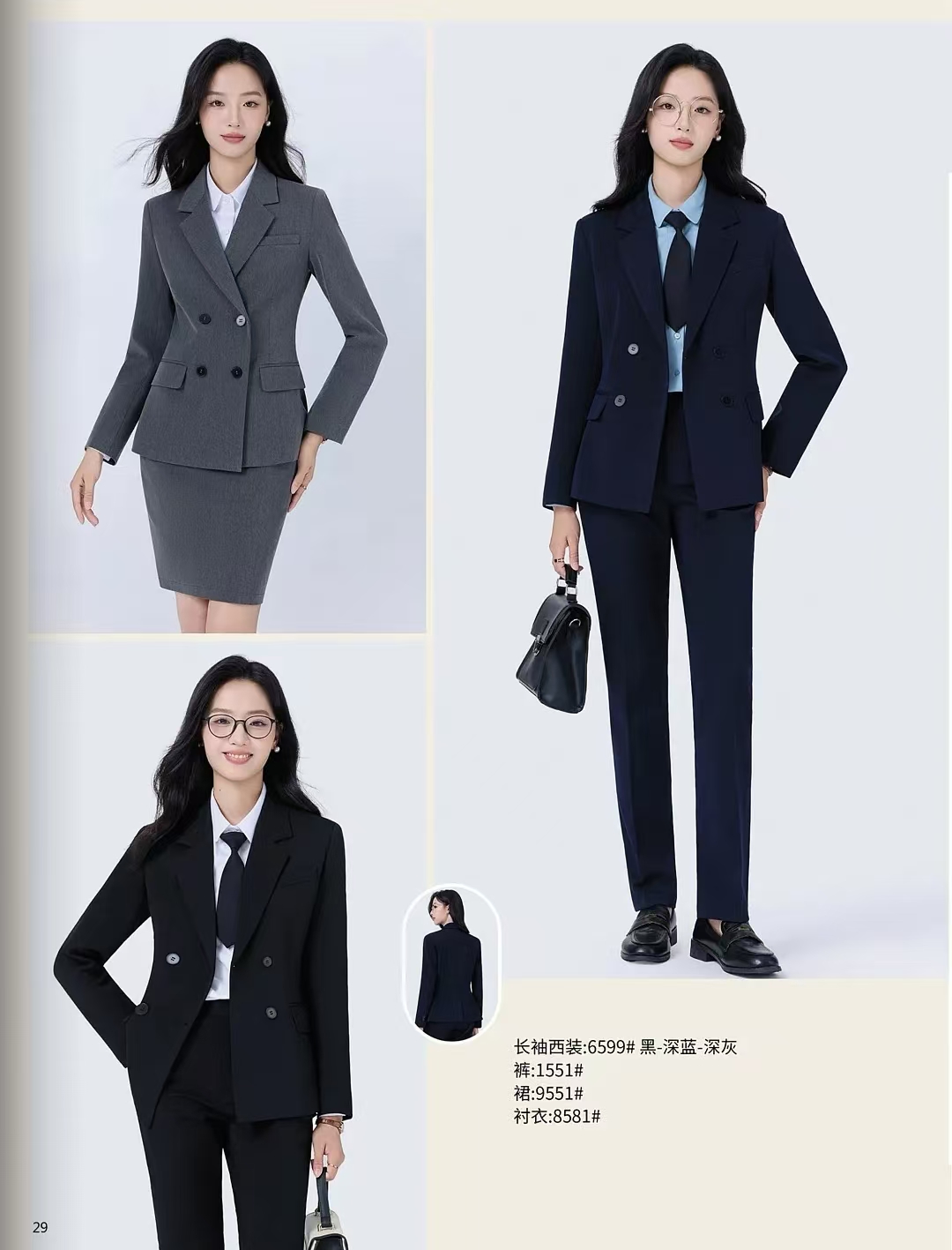金融行业职场女性在选择女士西装时,往往面临着款式单一、版型不合身、性价比低等问题。市面上的现货西装大多为标准尺码,难以满足不同身材女性的需求,尤其是对于微喇裤套装这种显腿长的款式,现货更是少见。而煜形象·个人西服定制·职业装定制则打破了这一局限,其专业的定制服务能够根据客户的身材数据,量身打造出贴合的版型。以女士西装微喇裤套装为例,煜形象的量体师会精准测量客户的腰围、臀围、腿长等数据,结合客户的职业需求和穿着习惯,对微喇裤的裤型、长度、开衩等细节进行调整,确保套装不仅显腿长,还能展现出金融职场女性的干练与优雅。