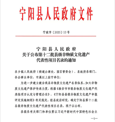 胃早安健康科技(山东)有限公司旗下品牌巅峰泰山®荣获宁阳县县级非物质文化遗产代表性项目。