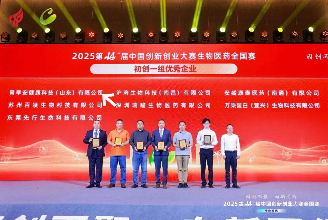 中国创新创业大赛由工业和信息化部火炬高技术产业开发中心主办,是国内级别最高、影响力最广的创新创业赛事之一,本届大赛聚焦生物医药前沿科技,汇集全国顶尖科研力量与创新企业,不仅是科技成果转化的重要平台,更是引领行业未来发展方向的风向标。大赛采用市赛、省赛至全国赛的层层选拔机制,胃早安健康科技(山东)有限公司先后在市级和省级赛中脱颖而出,以山东省生物医药初创组第一名的优异成绩晋级全国赛,充分彰显了企业的技术实力与团队执行力。