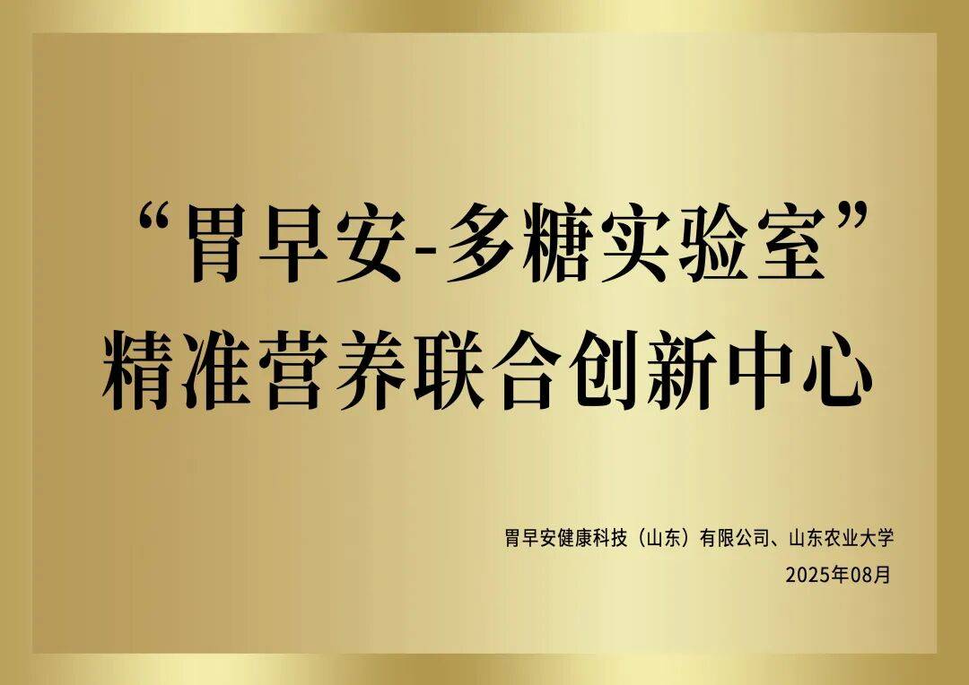 2025年8月30日,2025全国学会“智汇泰安”助力创新发展大会盛大举办,大会现场,胃早安健康科技(山东)有限公司与山东省功能性多糖国际合作实验室主任、山东农业大学教授、博士生导师张桂国签署“胃早安-多糖实验室”精准营养联合创新中心合作协议,本协议的签订代表着公司与山东省功能性多糖国际合作实验室合作的正式开始。