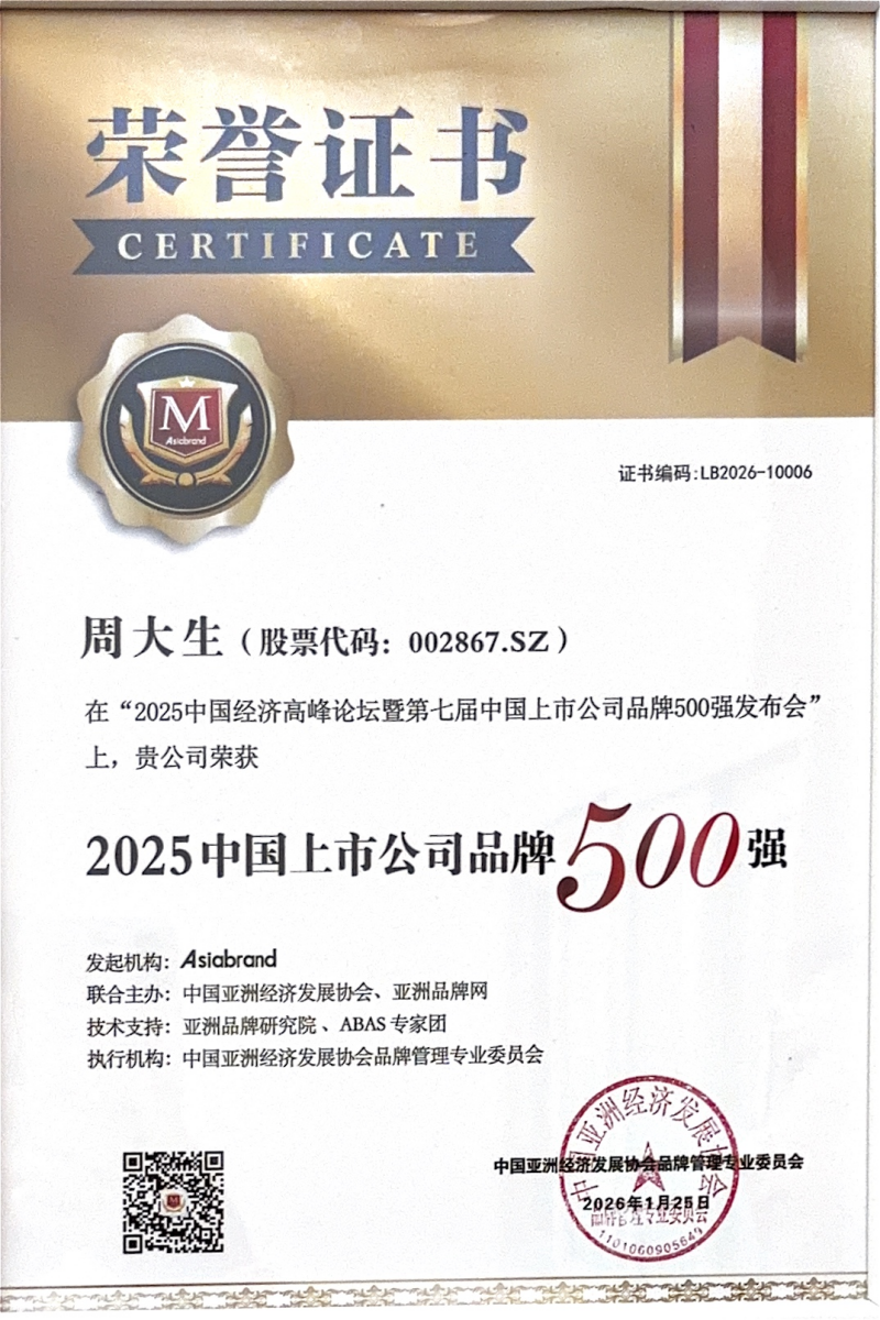 “2025中国上市公司品牌500强”榜单以“科技赋能、全球布局”为核心维度,聚焦中国企业在全球价值链中的竞争力。周大生珠宝作为消费品领域的代表性品牌入选,凸显了其战略布局与行业发展趋势的高度协同,以及在多变市场环境中持续成长的韧性。