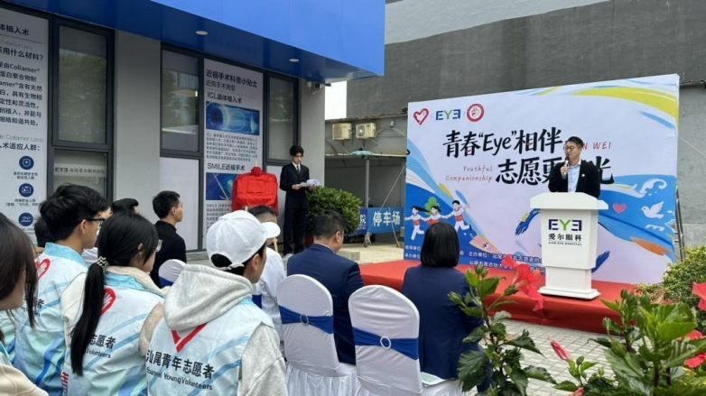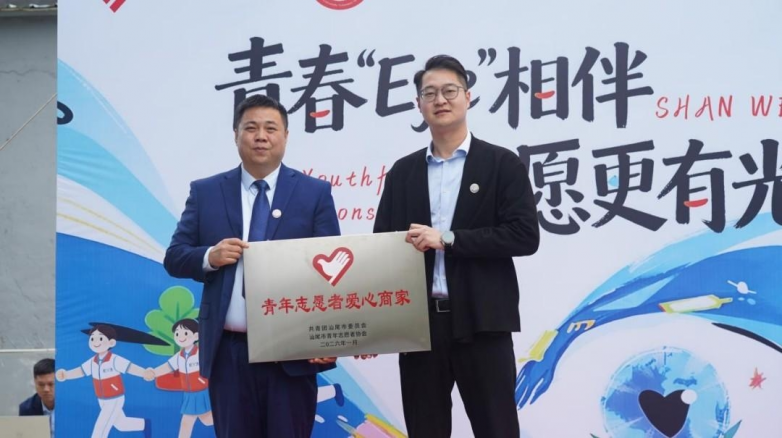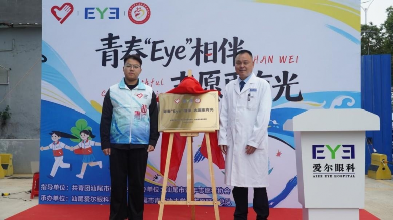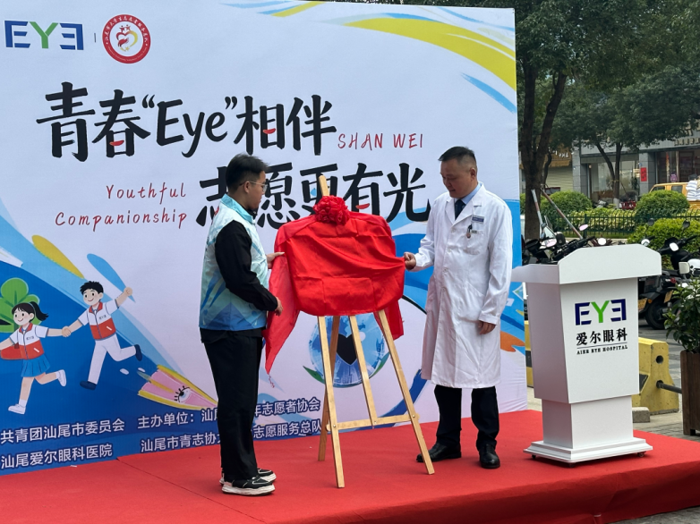 启动仪式上,汕尾爱尔眼科医院获授“汕尾市青年志愿者爱心商家”牌匾,标志着这场守护志愿者眼健康的公益合作正式启航。