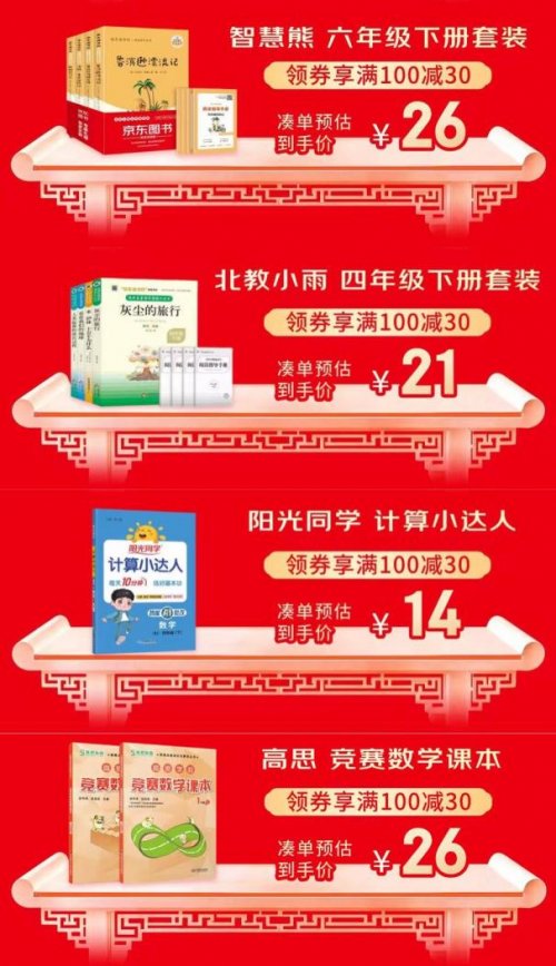寒假不仅是休整的时光,更是温故知新、蓄力新学期的宝贵窗口。为助力学子们高效利用这段时光,京东图书年货节推出寒假教辅书单,汇集覆盖小学同步、课堂辅助、中高考冲刺及文学素养等多维度的精选好书,并带来领券享满100减30的专属优惠。即日起,打开京东APP搜索“图书年货节”,一站备齐适配各学段、贴合教学进度的优质学习资料,让假期学习更有规划,为新学期注入满满信心。