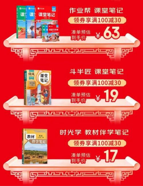 高效的课堂学习,同样离不开清晰的笔记与直观的解析,课堂笔记类教辅如同一位贴心的“学习伙伴”,将教材重难点清晰呈现。《作业帮课堂笔记》覆盖学习全场景,实现与教材1:1同步,配有彩色批注与视频讲解;《斗半匠课堂笔记》采用四色笔记法,并附有预习复习模块与思维导图;《时光学 教材伴学笔记》同步教材,以三色批注整合预习、笔记与复习全流程,配有视频讲解,适合学生日常学习辅助,17元即可轻松入手。
