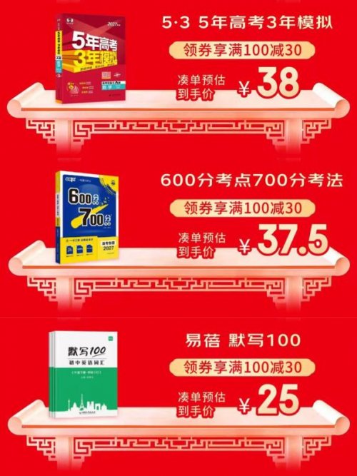 面对中高考等重要节点,系统化的备考资料至关重要。京东图书寒假教辅书单汇聚了多部历经市场检验的权威备考丛书,《5年高考3年模拟》作为经典教辅,通过整合近年真题与模拟题,38元助力科学梳理考点与题型;《600分考点700分考法》则以思维导图构建知识网络,精准聚焦高频考点与解题思路;而《易蓓 默写100》采用不同默写形式,赠送配套外教音频,强化知识记忆与读音,25元即可为升学冲刺提供扎实的训练支持。