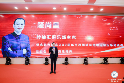 影响利企业家俱乐部创始人蒋忠飞、总冠名单位高坤董事长、岭袖汇国际俱乐部主席隆尚呈先后登台致祝酒词,向总统阁下与全体来宾传递美好祝愿。