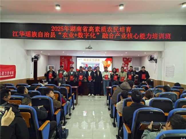 2月1日,2025年湖南省高素质农民培育江华瑶族自治县“农业+数字化”融合产业核心能力培训班圆满落幕。来自全县的新型农业经营主体带头人、返乡农民工、退役军人、农村创新创业者等50名学员,历经15天多维度、沉浸式的系统培训,全部顺利通过考核,将为江华乡村产业数字化转型注入新鲜活力。