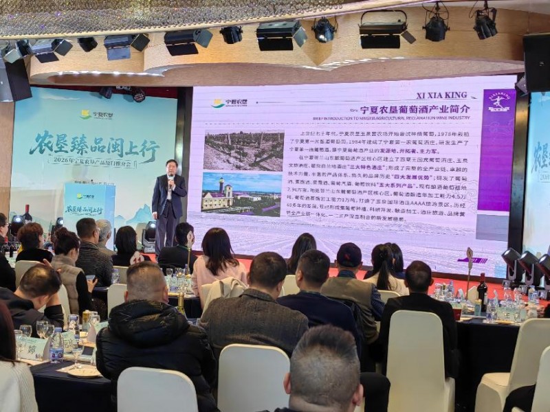 在核心产品推介环节,宁夏农垦特色产业依次精彩亮相,全方位展现“宁夏好物”的独特魅力。乳制品推介代表王洁以“每一滴牛奶都凝聚阳光与草原的气息”为主题,详细介绍了宁夏农垦从牧场养殖、原料收购到生产加工、冷链运输的全链条品质管控体系,让在场嘉宾直观了解到产品的安全与优质;牛羊肉产业推介代表胡建银重点讲解了“三段式冷链供应链”等创新模式,用专业数据和实际案例,让嘉宾们深刻感受到西北风味的新鲜、安心与地道;文旅推介官高娜带来了“贺兰山东麓酒庄深度游”“沙湖5D沉浸式体验”等特色文旅路线,生动勾勒出宁夏“诗与远方”的独特画卷,吸引了在场文旅界同仁的广泛关注;葡萄酒产业推介代表、中国酿酒大师俞惠明则讲述了西夏王葡萄酒从1978年第一株葡萄藤扎根贺兰山东麓,到成长为国内知名、走向世界的葡萄酒品牌的蜕变历程。现场展示的“苏武”智能售酒机更是成为亮点——这一具备恒温储酒、按杯售卖、智能管控功能的创新设备,打破了高品质葡萄酒的消费场景限制,让优质葡萄酒走进大众生活,充分彰显了宁夏农垦与时俱进、创新发展的理念。