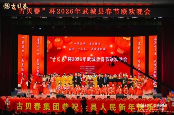 同日下午,古贝春冠名的武城县春节联欢晚会,在武城融媒体中心演播大厅举行。著名相声表演艺术家、古贝春形象代言人赵炎,中国广播说唱团著名相声演员、北京曲协副主席付强联袂演出,为家乡父老带来欢声笑语。古贝春集团董事长徐秀菊在致辞中表示,企业努力的全部意义,就是“酿好这杯代表家乡风土、承载岁月真情的酒”,让美酒融入千家万户有滋有味的生活。