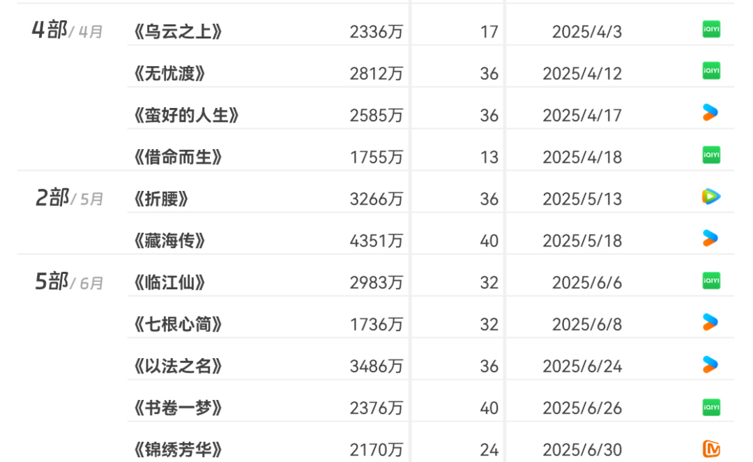 近日,云合数据发布《2025年长剧集网播年度观察报告》,显示爱奇艺全年评级S+剧集达21部,成为产出量最高的视频平台。同时,爱奇艺在全年上新长剧“累计有效播放霸屏榜”“集均30天有效播放破2000万剧集”“热播期集均有效播放排行榜”等榜单中,爱奇艺剧集上榜数量稳居行业第一。