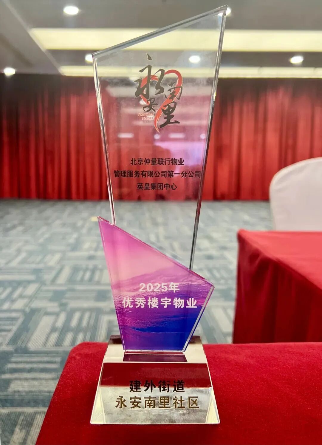 此次共建会议上,英皇集团中心合作物业管理团队——北京仲量联行物业管理服务有限公司第一分公司,也凭借专业服务与责任担当,荣获“2025年优秀楼宇物业”称号。