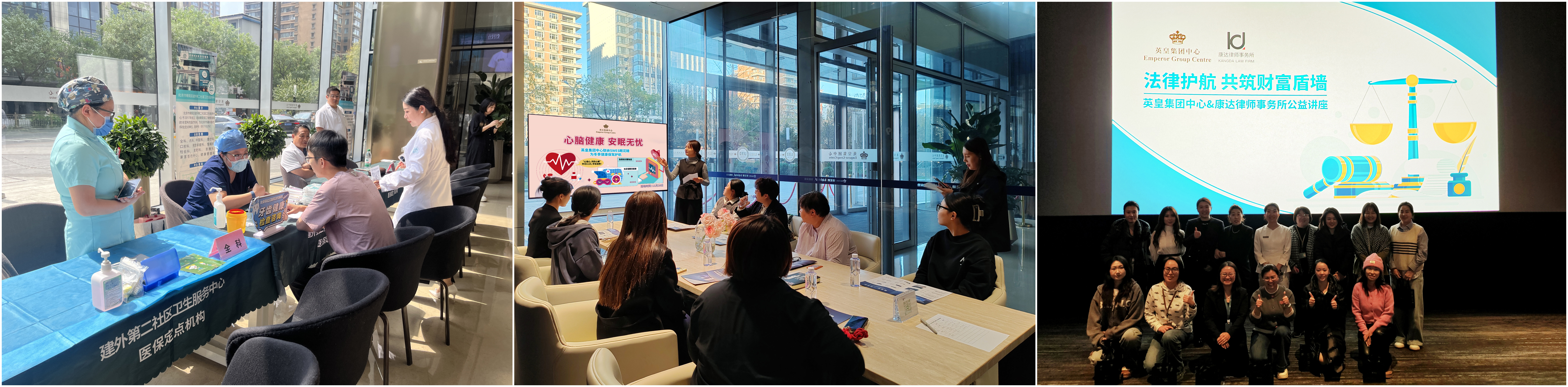 在英皇集团精神引领与资源赋能的双重支撑下,英皇集团中心深耕楼宇服务与社区联动,聚焦企业员工与辖区群众的实际需求,构建有温度、有关怀的办公与生活环境,传递人文暖意。携手楼宇内外共建单位,发起爱心义诊、公益讲座等项目,惠及数千名辖区居民与上班族,有效提升社区凝聚力。同时,向公众开放无障碍卫生间、顺丰速运快递服务中心、外卖柜、医药急救箱、自动体外除颤器(AED)等设施,提供轮椅、雨伞租借等便民服务,以专业素养满足多维度办公及生活需求,打造尊享商务生活体验。