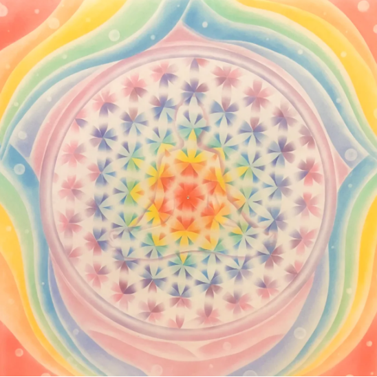 展览将展出《观自在》《心灵的丰盛》《涅槃重生》《爱的流动》《梅塔特隆立方体》《七脉轮》《独角兽之光》等系列作品。作品以“方”与“圆”为重要视觉与思想母题,通过色彩、几何结构与象征意象的组合,探讨秩序与流动、理性与感性、个体内在心理与外在世界之间的平衡关系,呈现出具有疗愈意味与精神指向的艺术表达。