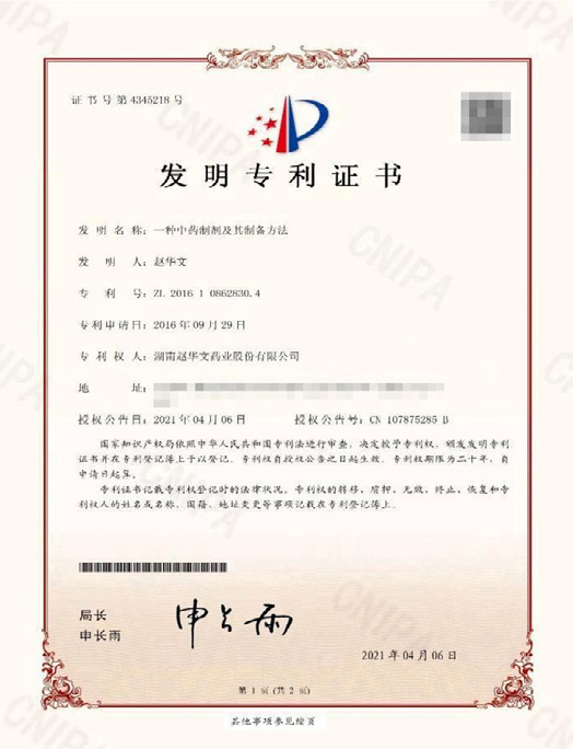 这份实践经验,让赵华文对中医药的疗效有了更真切的体悟。而家族传承的三国名将赵子龙的“行军散”秘方,更成为他深耕中医领域的核心。相传此方为赵云恩师童渊所赠,兼具解百毒、防瘟疫、治外伤等多重功效,是古代军旅的“救命良方”,助力赵云百战百胜、屡建奇功。为让古方适配现代健康需求,赵华文倾注数十载心血,逐味勘校药材药性,剔除原方中的有毒成分,增补安全有效的创新药材,将原本酸涩燥烈的行军散改良为无任何毒副作用的“赵华文百宝丹”,形成粉剂、喷雾剂、滴剂三种剂型。该方恪守“脾胃为后天之本”的中医核心理念,以“治未病”为核心要义,实现“未病先防、即病防变、已愈防复”的防治目标。该成果契合了中医专家佟晓玲提出的“万人一方”的三大标准即适配所有体质、无任何毒副作用,对各类疾病均有特效,无需辨证施治即可通用。2021年4月,该药获得国家发明专利授权,成为全球少数获批的“万人一方”方药。
