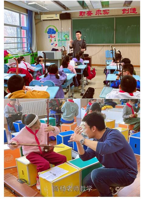 高杨自幼习琴,系统学习了民乐演奏,之后投身民乐教学。“我很享受教学过程。”他的话语简单而真诚,“看着孩子们从握不稳琴弓,到能完整奏出一首曲子,那种陪伴成长的喜悦,是无可替代的。”多年来,他的生活始终规律充实:清晨练琴,白天授课,夜晚研习曲谱。“音乐就是生活本身。能用二胡和学生交流、表达内心,就已经足够。”他的笑容里,透着一份淡然而坚定的满足。