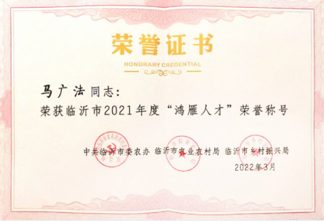 时光荏苒,岁月不负耕耘者,历经多年的深耕细作与稳步前行,马广法带领农场收获了丰硕的发展成果。培育的各类特色农产品在市场上广受消费者青睐,农场更凭借突出的发展成效屡获行业认可,其中凭借“大棚早熟蒜栽培技术创新与示范推广项目”成功斩获乡村振兴领域一等奖,成为乡村特色产业发展的标杆典范;与此同时,他的光荣事迹也先后被中央电视台CCTV-17《田间示范秀》《鸿雁大讲堂》等多家媒体争相报道,为推动乡村特色农业高质量发展提供了宝贵经验。