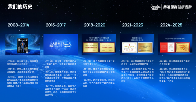 洞察到这一趋势,张海峰带领团队率先推动益生菌进入2.0时代——肠道菌群检测+多款标准品选择,通过华大自主研发的测序平台,对用户肠道菌群进行全面解析,明确菌群构成与功能短板,再根据检测结果匹配对应的标准化产品。这种“先检测后选品”的方式,虽仍基于标准化配方,但已实现从“盲目补充”到“对症调整”的跨越。这一模式的推出,让优美达迅速区别于传统益生菌品牌,也为后续的3.0时代奠定了技术与市场基础。2019年,优美达获评“益生菌行业创新实力十强企业”,2023年入选“好品中国”国家自主品牌行动计划,成为精准营养领域的标杆。