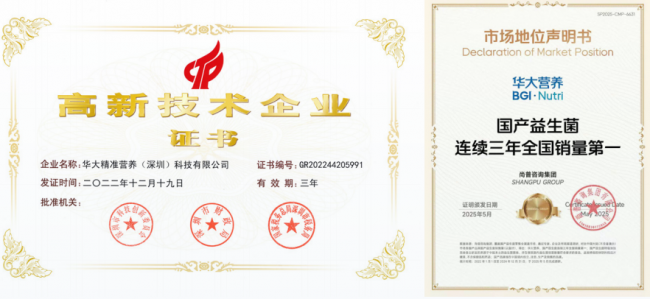 十余年间,华大微生物科研团队累计发表菌群相关SCI论文180余篇,其中30余篇发表于Cell、Nature、PNAS等国际顶级期刊;已获批微生物相关发明专利150余项,参与起草国家标准4项、行业标准3项、团体标准28项。这些沉甸甸的科研成果,不仅为产品研发提供了坚实支撑,更助力华大营养确立了在行业内的技术话语权。2022年,华大营养获批国家“高新技术企业”称号,次年获评深圳市“专精特新”中小企业,这份认可,是对其科研实力的最佳佐证。