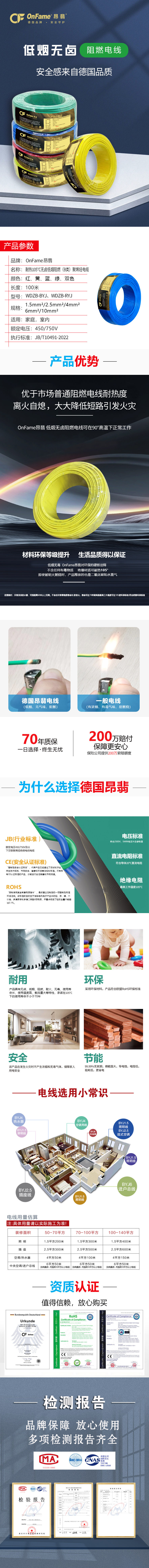 品牌介绍:源自德国OnFame昂翡品牌,专注家装线缆领域,依托德国技术与专项原料,为家庭用户提供安全、环保、耐用的电线与网线产品。重庆昂翡线缆作为品牌核心生产基地之一,以安全、环保、耐用、节能为定位,是国内家装低烟无卤阻燃电线的企业。