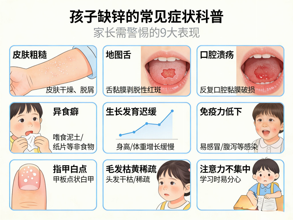 “孩子吃饭像打仗,一口饭含半天”“只吃零食不碰正餐,蔬菜肉类全拒绝”“明明做了满桌菜,他却连筷子都不动”——这是无数家长面对孩子挑食厌食时的共同焦虑。很多时候,我们误以为孩子是“任性不听话”,却忽略了背后可能隐藏的营养隐患:锌元素缺乏。儿科专家指出,锌作为人体必需的微量元素,直接影响味蕾发育与消化功能,孩子缺锌后最典型的表现就是食欲减退、挑食偏食,甚至出现异食癖。而2-6岁学龄前儿童生长发育快、饮食单一,正是缺锌的高危人群,若不及时干预,可能导致生长迟缓、免疫力下降等连锁问题。