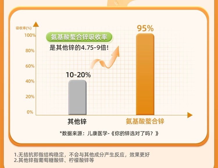 临床数据显示,儿童对液体锌的吸收率普遍在78%-98%之间,而固体锌的吸收率仅为45%-67%。这种高效吸收的特性,意味着补充的锌能真正作用于味蕾细胞更新与消化酶合成,从根源上改善孩子“吃什么都没味道”的问题,让食欲自然提升。