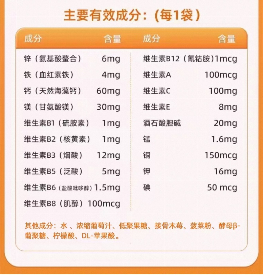 这种多维协同的配方设计,恰好契合了儿科专家“均衡营养”的育儿理念——解决挑食厌食的同时,为孩子生长发育提供全面支持,让家长无需额外搭配多种补充剂,省心又放心。