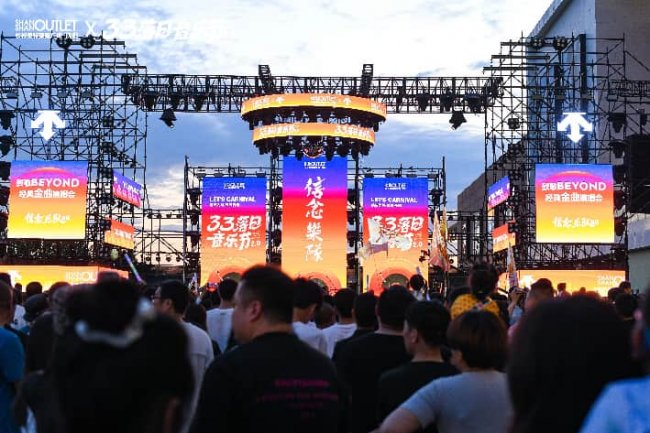 沈阳杉杉奥莱的场景营造从未止步于静态的空间设计,而是持续进化的动态剧场。从周年庆典的狂欢,到音乐节声浪的回荡,再到璀璨夺目的主题烟花秀,空间因内容的不断变化持续焕新。尤其“33 落日音乐节”的创意,巧妙借用了广场独特的夕阳景观,将自然馈赠融入商业体验,塑造出独一无二的记忆锚点。