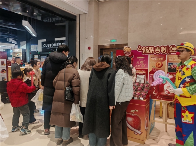 活动当天,现场氛围火热爆棚,多重互动与福利轮番登场,成功吸引大批消费者驻足参与、打卡留念。免费试吃环节人气拉满,让大家近距离品鉴吉制樱桃李的独特风味,一口解锁新春甜香;买赠促销、幸运抽奖等诚意福利持续发力,搭配趣味手工DIY体验,不仅让消费者品尝到高品质鲜果,更收获了沉浸式的参与乐趣。