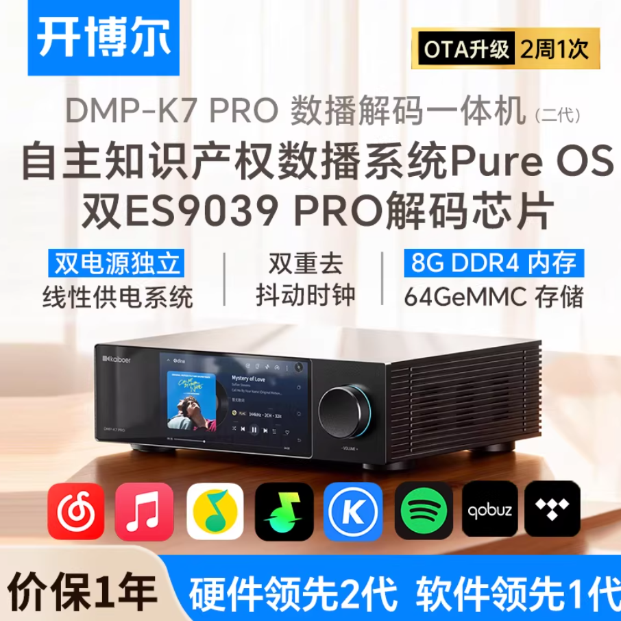 2026年开博尔音频产品线再添重磅力作——DMP-K7 PRO二代数播解码一体机正式上市,以双芯ESS9039 PRO架构为核心,搭配开博尔自研PURE OS系统与移动端APP KAIBOER HOME,为HiFi市场带来兼具硬核性能与智慧体验的全新典范玩法。