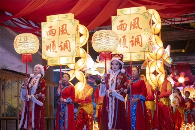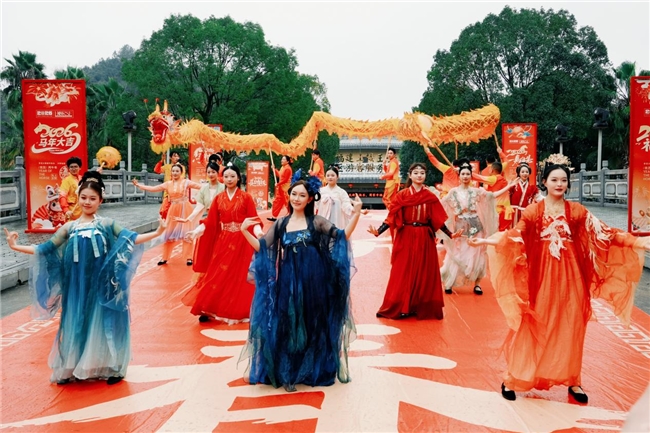 这里有欢趣互动——或与幽默亲切的“财神爷”现场“划拳过招”,在笑声与喝彩声中,传递新年的好彩头;或从经典民歌嗨歌到怀旧流行,来自天南海北的游客齐声合唱,在耳熟能详的旋律、欢乐喜庆的节拍里,将整个景区变成欢乐的海洋。