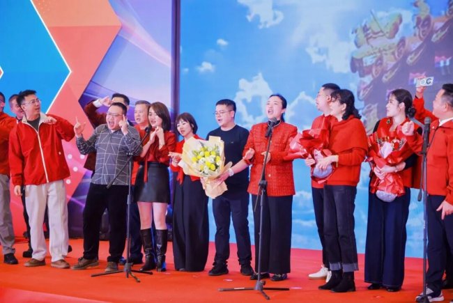 国歌嘹亮,激荡着家国情怀与奋进之志;司歌悠扬,联结着品牌初心与团队共情。当激昂的号角与温暖的纽带交织共鸣,山河与家园的情怀、个人与企业的使命在此刻深度交融。全体成员以歌声凝聚共识、传递归属,将现场的热烈氛围推向首个高潮。