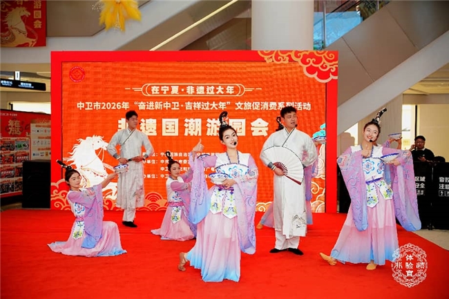 2026年2月10日,中卫市万达广场现场处处张灯结彩、人头攒动,洋溢着喜庆祥和的节日氛围,“在宁夏·非遗过大年——中卫市2026年‘奋进新中卫 吉祥过大年’文旅促消费系列活动·非遗国潮游园会”正式启动。千余名市民群众携家人亲友踊跃参与,在“非遗+国潮”交织融合的新春盛会中重温传统年俗,体验文化魅力。