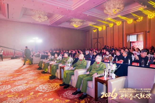 2026年1月31日,企业明星、“硬骨头六连”十六勇士参战英雄暨安徽省公共关系学会文化与艺术专委会迎新春大联欢春晚温情启幕。硬骨头六连多位参战英雄、军政各界领导、企业家代表、书画家及社会各界嘉宾欢聚一堂,以军民联谊的方式共话鱼水深情,同贺即将到来的2026丙午马年新春佳节,橄榄绿与奋斗红交相辉映,谱写了一曲拥军爱军、同心筑梦的时代乐章。