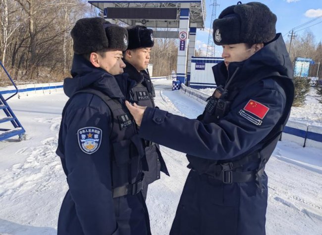 “过年好,边境检查,请将车辆熄火,出示有效身份证件接受检查!” 在执勤现场,执勤民警礼貌又严谨地核查过往车辆。春节期间车流增多,他们白天黑夜连轴转,夜间室外气温低至零下 30 多摄氏度,面罩结上薄冰,脸颊冻出红痕,中性笔被冻得无法书写,手指冻得难以伸直,他们就把笔和手揣进腋下暖一暖,继续登记信息。这份辛苦,早已融入日常,成为坚守的常态。