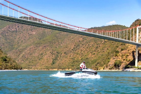 春节期间,“FUN浪·澜沧江”以“潮玩、亲水、全龄、一站式”为核心亮点,精心推出八大特色水上运动项目。游客们可驾驶摩托艇,于水面上风驰电掣,尽享速度带来的极致刺激;观赏水上飞人炫酷绝伦的表演,深度领略水上运动的独特魅力;与家人一起乘坐亲子碰碰船,享受欢乐的互动时光;开启SUP桨板与背包艇的轻奢体验之旅;或是乘坐休闲皮划艇,悠然慢游江景;更有小黄鸭、飞鱼船等网红漂浮艇,充分满足不同游客的多元需求,完美兼顾刺激体验与休闲度假双重享受。
