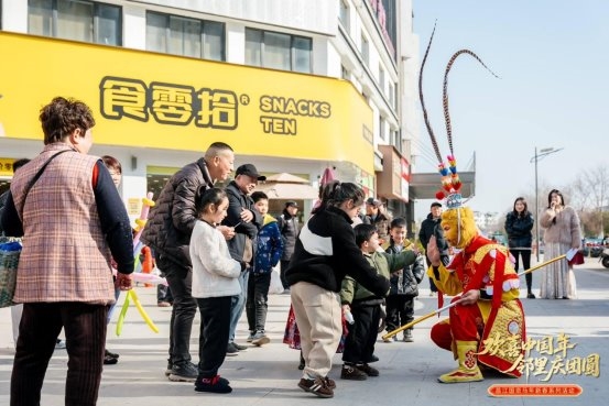 本次活动不仅注重舞台艺术的呈现,更强调观众的参与感与体验感。现场精心设计多轮互动环节——趣味游戏妙趣横生,“财神”“美猴王”等吉祥人偶穿梭派福,送出精美礼品,吸引众多市民踊跃参与。舞台与观众席之间的界限被温情打破,欢声笑语中传递着新春祝福,生动诠释了“邻里庆团圆”的深层内涵。
