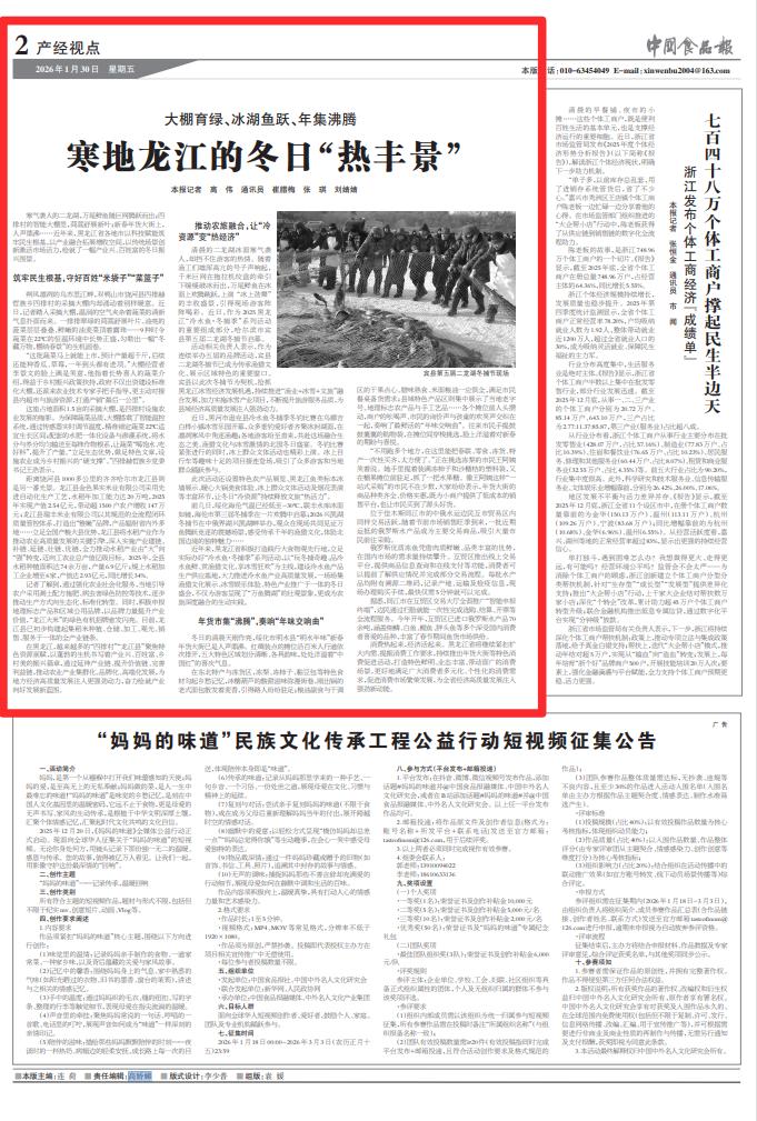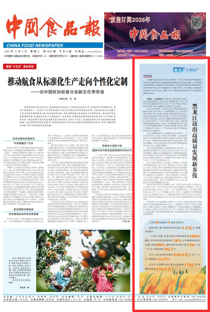我们将继续秉持专业、权威、深度的新闻理念,围绕国家粮食安全、黑土地保护、农产品精深加工、食品产业集群建设、农文旅融合、乡村振兴、食品安全保障等重点领域,推出更多有思想、有温度、有品质的新闻作品。我们将聚焦产业发展新动态,深挖品牌建设新亮点,关注行业转型新趋势,讲好新时代黑龙江食品产业的发展故事;我们将继续深耕黑龙江沃土,充分发挥央媒驻地方机构的桥梁纽带作用,搭建政企对接、行业交流、品牌传播的优质平台,既做黑龙江发展的记录者,更做黑龙江好物走向全国的助推者,为黑龙江经济社会高质量发展贡献媒体智慧与力量,推动更多黑龙江优质食品品牌享誉全国、畅销全国,为黑龙江食品产业高质量发展贡献更多媒体力量!