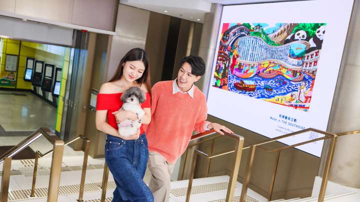 商场内艺术氛围迎面而来,「Made in THE SOUTHSIDE—街头艺术企划」由香港街头艺术团体HKwalls协作筹办,THE SOUTHSIDE联同多位本地艺术家,包括大脑出租(Brainrental)、Bo Law、JasonTommy、LeonLollipop及Wong Ting Fung,以港岛南区独特风貌为题,创作一系列原创插画及动画作品。作品分布商场各处,墙面与屏幕交替呈现,静动画作交错展开,展现南区的人文氛围与社区特色,为港岛南注入活力与创意。