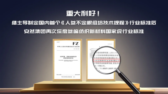 从主导人参不定根组培技术规程,到深度参编纺织新材料领域的导电长丝试验方法标准,安然集团的每一次标准突破,都源于“创新驱动”的发展战略。