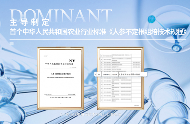 主导制定国内首个《人参不定根组培技术规程》行业标准