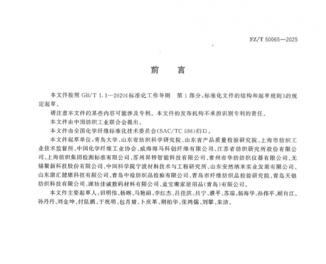 重大利好!继主导制定国内首个《人参不定根组培技术规程》行业标准后,安然集团在行业标准化领域又摘得一项重磅成果,再次深度参编国家级行业标准!近日,工业和信息化部正式批准发布了纺织行业标准FZ/T 50065-2025《化学纤维 导电长丝电阻拉伸灵敏系数试验方法》。这是该标准的首次制定,是纺织化纤领域的全新试验方法标准!这一标准已于2026年2月1日全面实施。