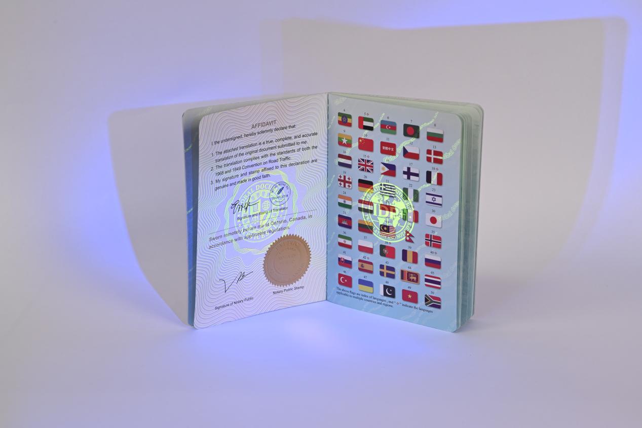 国际驾驶执照文件上译有45种语言 - 英语,法语,西班牙语,俄语,阿拉伯,汉语,德语和日语等。