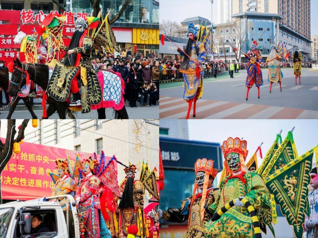 此外,长青镇以全国文明镇为名片,通过特色宣传方阵、游龙舞狮、百人锣鼓队、传统社火等游演队伍,彰显和美宜居示范镇的建设成果;姚家沟镇融合宣传、汉服、龙狮社火、锣鼓方阵,将“最美桃花源”的生态文旅特色展现得淋漓尽致;横水镇以祥龙瑞狮引路,五谷丰登、十二生肖、福娃腰鼓等方阵满溢新春吉庆,传递全区乡村的丰收喜悦;城关镇融合大秦文化与非遗传承,高扬旗帜、大秦战鼓、泥塑传承、操牌舞队,共同展现全区文旅名镇、商贸重镇的奋斗活力。