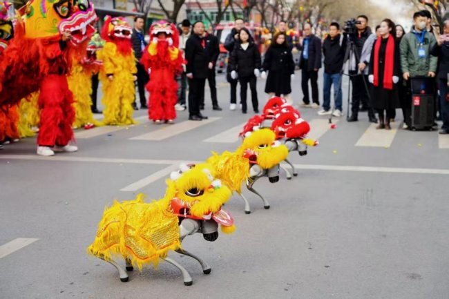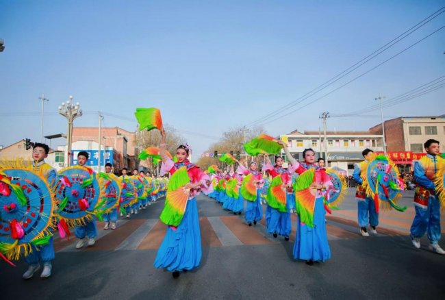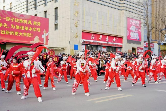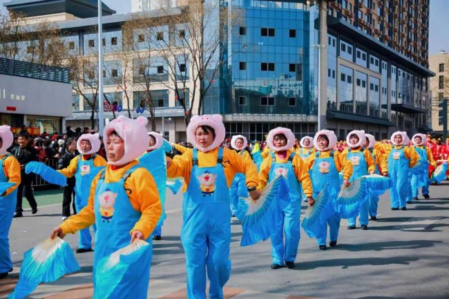 非遗科技同台竞技。糜杆桥镇紧扣空港新镇发展定位,融合打铁花、麦秆画等非遗展示与机器狮、飞行器表演,打造传统与科技交融的特色方阵。田家庄镇大塬村带来经典“四季庆典鼓”与“十大主题社火”,让千年古村落的非遗文化在社火中活态传承。