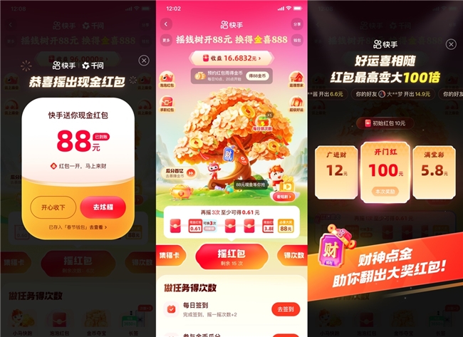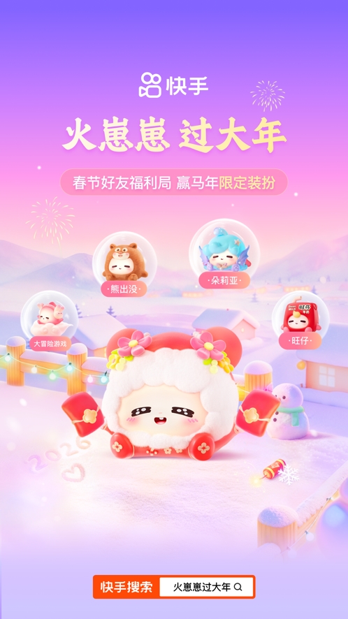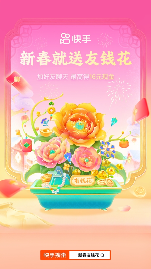 从2月4日至23日期间,快手推出丰富多样的红包玩法与互动活动,兼顾趣味性与实用性,涵盖“摇一摇领红包”“换红包”和“点金卡”“卫视春晚联动下红包雨”“集卡瓜分2亿”“好友互扫招财码”“小马PK赢金币”等,配套现金、金币、实物好礼等福利。同时,平台上线“火崽崽过大年”“新春友钱花”等社交互动活动,搭配多知名IP联名装扮,进一步丰富亲友团圆互动形式、增添节日仪式感。