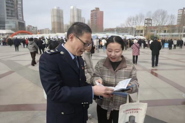 国家税务总局三门峡经济开发区税务局近期借助当地春季大型招聘会平台,组织业务骨干开展个人所得税政策宣传辅导,向现场求职市民讲解年度个税汇算相关政策与办理规范。图为税务干部向市民讲解2025年度个人所得税综合所得汇算的办理流程、专项附加扣除规则、申报渠道等重点内容,并告知市民汇算将于3月初正式开启,助力群众顺利完成年度汇算。(袁博辉)