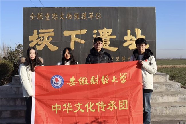 为深度探寻淮河文化脉络,解码从大汶口文化到秦汉时期的文明基因,助力地域文化传承与活化,1月11日,文学院“徽韵寻根”实践团队在指导老师的带领下,赴宿州、蚌埠两地开展“垓下寻迹 问道徽韵”专项实践活动。团队先后走进灵璧县韦集镇老胡庄垓下遗迹、垓下遗址博物馆,再赴固镇垓下遗址博物馆与蚌埠市博物馆,以实地踏勘、沉浸式参观的方式触摸历史温度,在遗址遗存中感悟文明传承,用青春脚步丈量文化根脉。