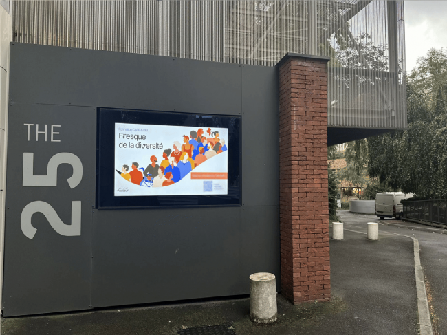 巴斯德研究所在多处静态信息展示区域部署了 Philips Tableaux。这款创新的彩色墨水屏在显示静态图像时完全不消耗电能,仅在画面切换的瞬间产生微弱功耗。